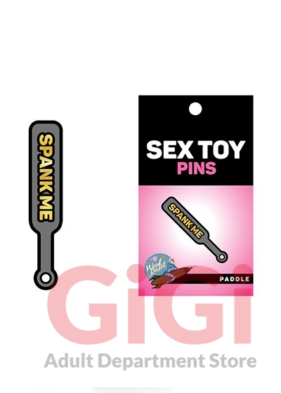 This fun soft enamel lapel pin by Wood Rocket is the perfect accessory. Wear your sex product pride! This paddle Sex Toy Pin is gray with gold text and looks just like a fetish BDSM paddle that says Spank Me but it's tiny! Stick it on your hat or clothes or backpack or bag or purse it or give it as a gift! Please don't stick it on your butt. It is sharp!
