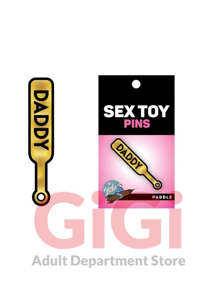 This fun soft enamel lapel pin by Wood Rocket is the perfect accessory. Wear your sex product pride! This paddle Sex Toy Pin is gold with black text and looks just like a fetish BDSM paddle that says Daddy but it's tiny! Stick it on your hat or clothes or backpack or bag or purse it or give it as a gift! Please don't stick it on your butt. It is sharp!