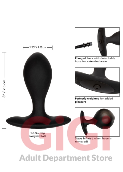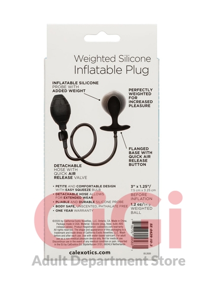 The CalExotics Weighted Silicone Inflatable Plug is a one-of-a-kind anal probe with inflatable weighted body, easy squeeze bulb and detachable hose. For increased pleasure, this probe is perfectly weighted with a 1.2 oz ball. To inflate your ecstasy, simply attach the hose and press the easy squeeze bulb. Once you’ve reached the desired size, the probe will hold its size even when the hose is removed. A quick air release button allows for gentle deflation and removal.