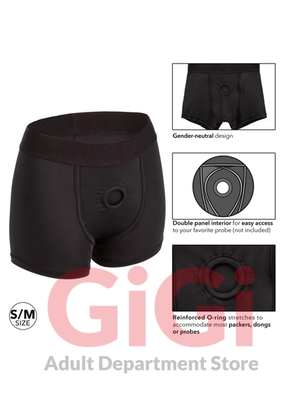 The Boundless™ Boxer Brief Harness is an ultra-comfortable, easy wear harness designed with powerful performance and comfort in mind. This classic harness has a supportive extra-wide waistband, soft stretchy material and internal probe straps for the ultimate support. Enjoy easy access to your favorite probe with the accommodating double panel interior design. The durable, reinforced O-ring stretches to accommodate your favorite packer, vibrator or dildo.