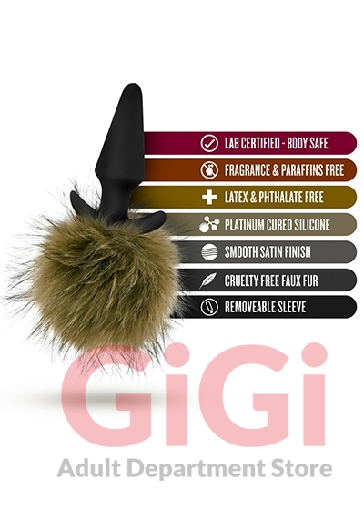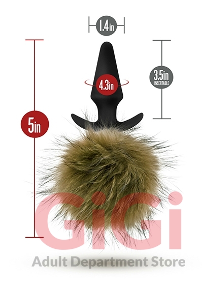 The Blush Novelties Pom Plugs are cute little pompoms that you wear in your rear. Pom Plugs is a cute and sexy bedroom accessory to spice up your sex life with your partner. Resembling furry rabbit tails it is great for animalistic role play. Be the bunny yearning for a nice hard carrot. Your partner will enjoy the watching your pompom bounce as he thrusts from behind. A note about the shape of this product. The head and neck of the plug is shaped so when plug is inserted it stays securely inserted. The handle is shaped so that the handle conforms comfortably to your body making extended wear more comfortable. Pom Plug is made from pure non porous platinum cured silicone and contains no animal fur. The Blush Novelties Pom Plug is body safe and contains no phthalates nor latex. Wash with soap and water before and after each use. Air or blow dry the faux fur on a cool setting. Make the Pom Plugs addition to your anal plug collection.