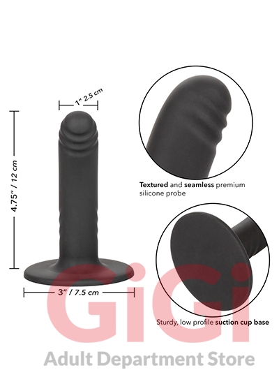 The Boundless™ 4.75” Smooth Probe is sure to thrust you into the orgasmic world of sensational internal stimulation. The perfectly angled shaft, sensually ridged shaft and strong suction cup base let you deliver pinpointed stimulation with every thrust. The accentuated probe and rigid textured shaft are created to perfectly tease intimate curves and indulge internal sweet spots.
