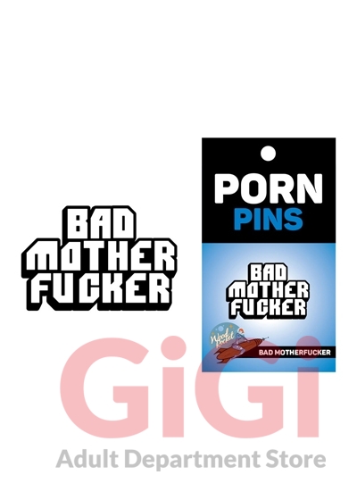 This funny soft enamel lapel pin by Wood Rocket is the perfect novelty apparel accessory. This Bad Motherfucker Pin is part of our Porn Pin collection and is just the right amount of dirty to wear in public. Stick it on your hat or clothes or backpack or bag or purse it or give it as a gift!