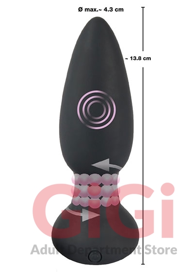 This butt plug provides hot backdoor action with its 7 rotation modes. It can be controlled with the remote control which means that it is perfect for exciting couple's games or hot solo fun. Numerous small beads rotate in the shaft and create unbelievable stimulation. The base stops it from sliding in too far. It is also waterproof which means that it can have hot fun in the bath or the shower. Includes a USB cable and a battery for the remote control (1 x 23A).