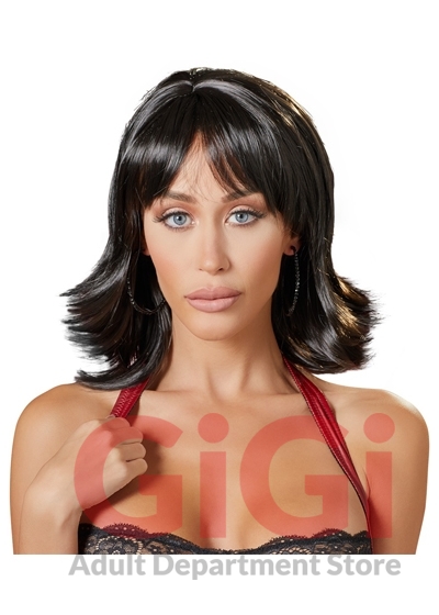 Be the centre of attention at the next carnival or party when you wear this saucy, high-quality wig. Trendy black shoulder-length wig with modern choppy layers. Approx. 30 cm long. Material: 100% polyester.