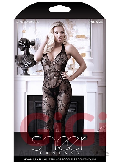 Good As Hell Halter Lace Footless Bodystocking One Size