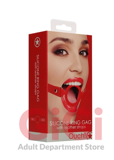 Ouch! Silicone Ring Gag With Leather Straps Red