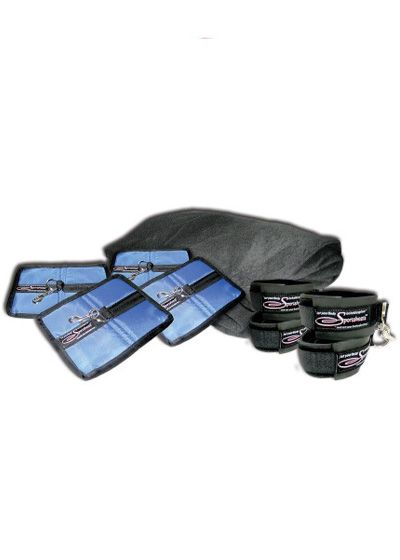 An amazingly versatile bondage set innovative enough to spawn an entire line of tools and accessories for playful couples, the Sportsheet turns your bed into a complete s&m playground that can get as intense as your desires dictate. The core of this set is a bed sheet that fits just about any queen or double bed (waterbeds included). It's made from a special blend of Velcro-compatible polyester that essentially makes your bed a magnet for the included Velcro Anchor Pads, 4 are included, which can be placed anywhere on the sheet as you and your playmate see fit, allowing for stability in different sexual positions with the help of tethers and other compatible accessories, plus providing the potential for all sorts of cuff and restraint scenarios. The pads themselves are easy to place and peel off easily, but once they're set, you won't believe how strong and durable they are, they won't budge with any amount of struggling and pulling. To get you started, 4 pairs of Sportsheet's great Sports Cuffs are included, they attach with hardy clips to the anchor pads to hold your playmate tight in whatever positions you can dream up. This set is compatible with all the Sportsheets accessories, opening a world of sexy possibilities for you and your object of desire. There's a dvd included, which showcases tricks, tips and possible uses for the Sportsheet, in case your imagination needs a little prodding.
