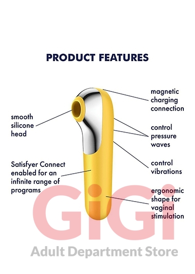 You know what you want: Satisfyer knows what you deserve. When it comes to clitoral pleasures, indulge yourself! Dual Love fits perfectly in the hand and cares for your skin with a smooth surface made of medical silicone. In addition to its particularly elegant design, this sympathetic toy of course has other impressive arguments to offer: while the non-contact pressure wave stimulation pampers your clitoris, the soft head caresses the labia with intelligent vibrations.