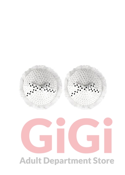 Peekaboos Sequin White Bow Pasties 1 Pair Round