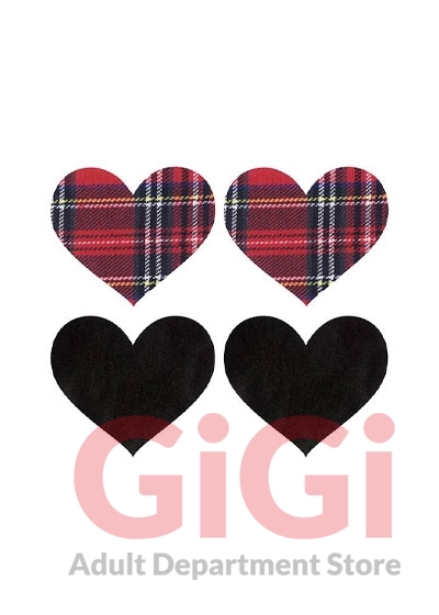 This pasty set has an opaque set of black pasties while the other is a more colourful plaid patterned set. Acting as a nipple cover, each pasty sits firmly yet gently on the skin and holds strong no matter the activity being performed. Wear sensual garments like fishnet tops or schoolgirl skirts with these pasties with unmatched confidence - these pasties have you covered!