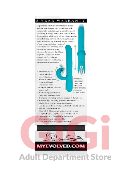 - Thrusting, twirling vibrator with intense clitoral stimulation