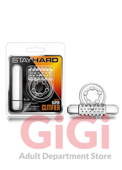 Stay harder longer and experience heightened sensations during your lovemaking with the SUPER Vibrating Clitifier and its comfortable dual support ring for your penis and scrotum. Made of a strong, stretchy, hypoallergenic TPE, ensuring it fits you just right.