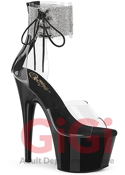 Pleaser 7"" Heel Platforms Ankle Cuff Sandal w/Side Lacing/Blk US Size 9