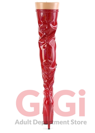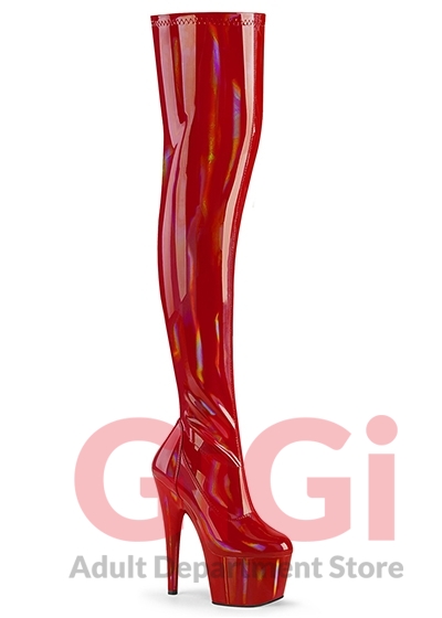 Pleaser 7" Heel Stretch Thigh Boot ADORE-3000HWR Side Zip Red Hologram/Red US Size 9