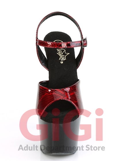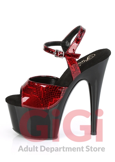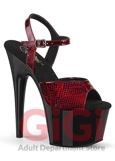 Pleaser 7" Heel Snake Skin Print Ankle Strap Sandal ADO709SP Red/Blk US Size 9