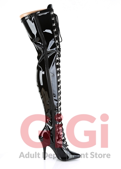 5" (12.7cm) Heel D-Ring Stretch Thigh Boot, Full Inner Side Zipper
