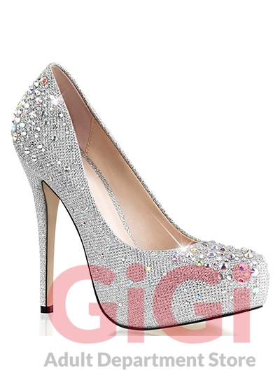 5" Heel (12.7cm), 1" (2.5cm) Platform with Multi Size Rhinestones Embellished on Vamp Glitter