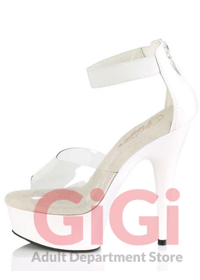 Pleaser 6" Heel Platform Elastic Band Close Back Ankle Strap Sandal Back Zip Clr/White US Size 8