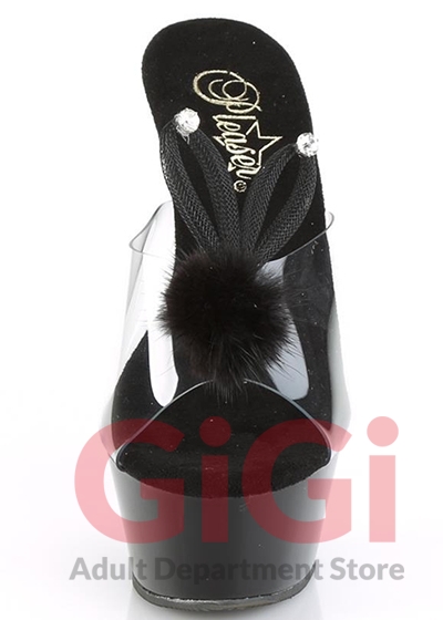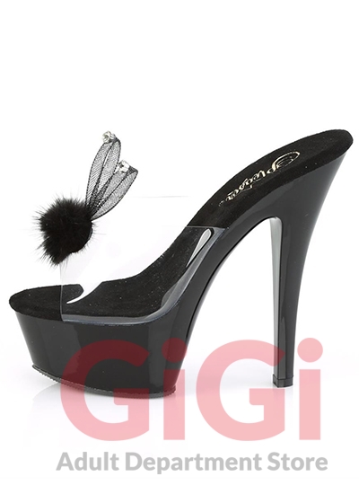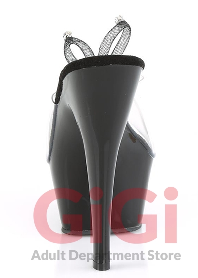 Pleaser 6" Heel Slide Sandels w/ Bunny Ear KISS201BUNNY Clr/Blk US Size 9