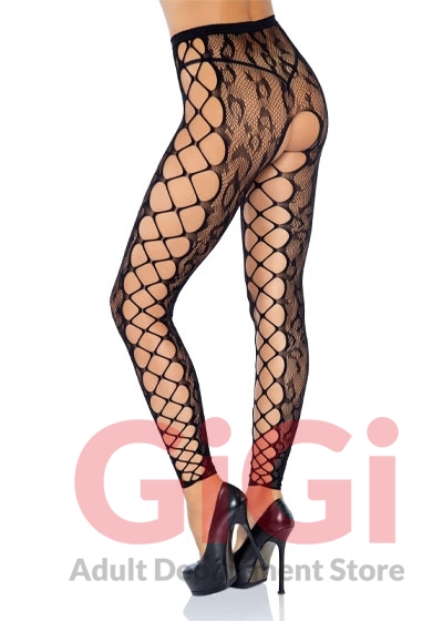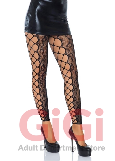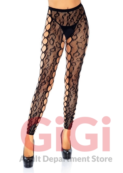 Footless Leopard Lace Crotchless Tights