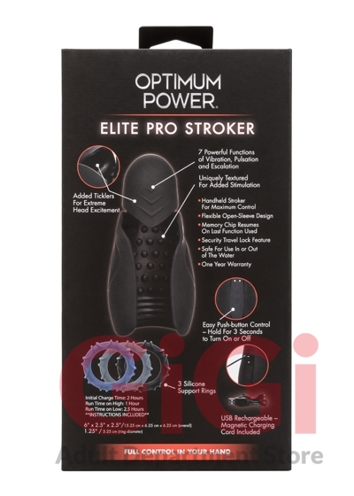 This handheld vibration machine will boost your pleasure with the 3 silicone support rings, included for your stimulation, and the state-of-the-art memory chip will resume on the last function you used, ensuring a quick, no-hassle start and end to your late night or early morning sessions. The included travel lock for the Optimum Power® Elite Pro Stroker ensures no embarrassing TSA moments, with reactivation requiring a 3-second push.