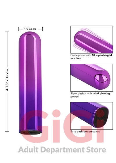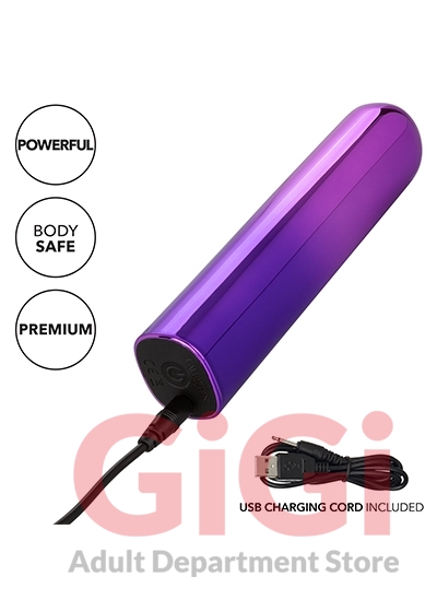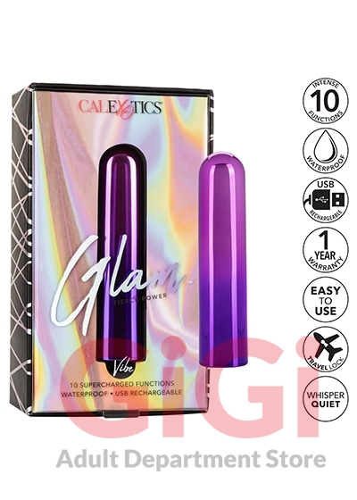 The shining Glam™ Vibe bullet is a sleek super-powered vibrator packed with 10 functions of high-intensity vibration in a sleek metallic package. Fiercely powerful and whisper-quiet, this gorgeous gradient bullet is ready to play wherever pleasure takes you. Add a touch of glamour to your toy box with the bold metallic ombré finish.