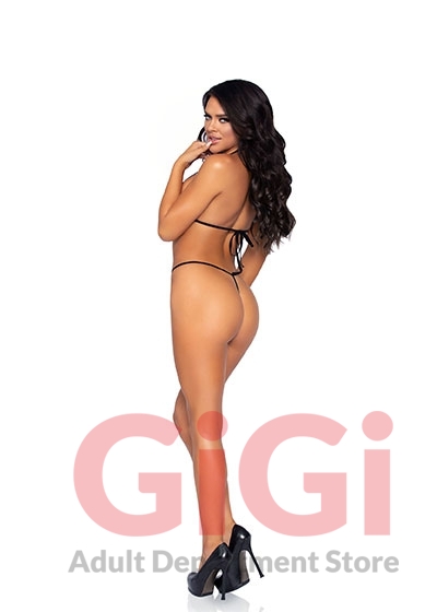 2 Pc. Rhinestone Net Bikini Top and G-String - One Size - Black