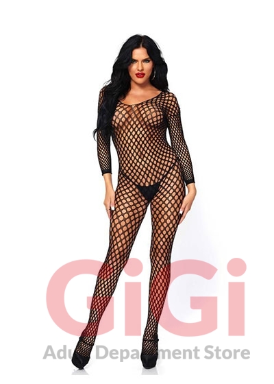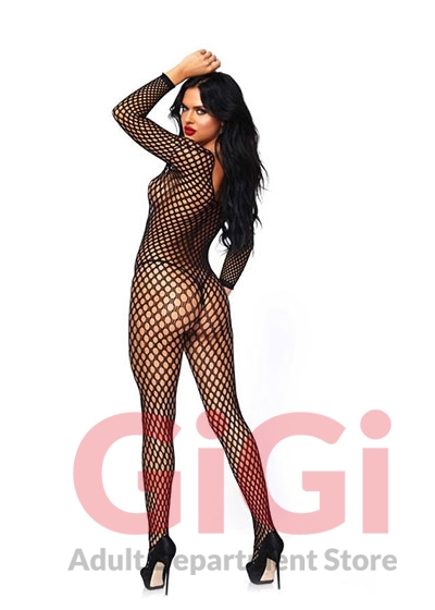 Net full bodystocking. Long sleeves. One size fits most 90-160 lbs.