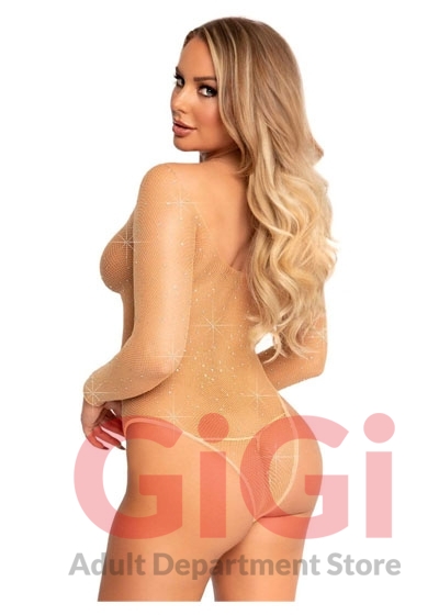 Rhinestone Snap Crotch Bodysuit - One Size - Nude