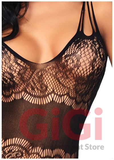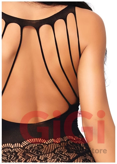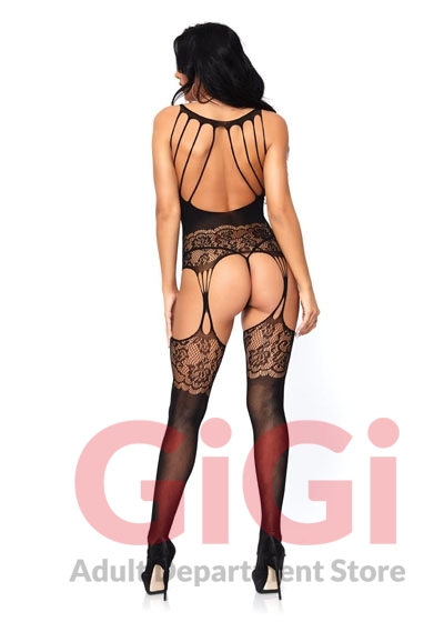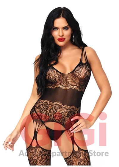Strappy rose lace suspender bodystocking.