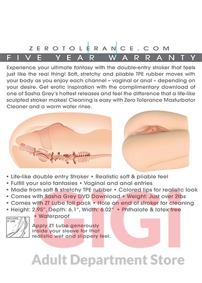 Sasha Grey Movie Download With Realistic Vagina & Ass Stroker Experience your ultimate fantasy with the double-entry stroker that feels just like the real thing! Soft, stretchy and pliable TPE rubber moves with your body as you enjoy each channel – vaginal or anal – depending on your desire. Get erotic inspiration with the complimentary download of one of Sasha Grey’s hottest releases and feel the difference that a life-like sculpted stroker makes! Cleaning is easy with ZT Masturbator Cleaner and a warm water rinse.