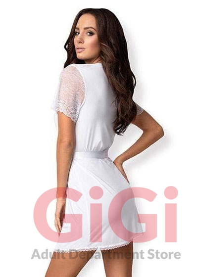 This beautiful kimono with satin belt is not only extremely comfortable to wear, but also very sexy. Are you looking for an airy night dress for yourself or do you want to surprise your partner with something exciting? Then this kimono nightdress is a valuable accessory to have in your closet! A matching thong is included with the nightdress! 85% polyamide, 15% spandex.