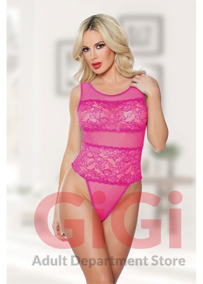 A retro take on a lingerie classic, this teddy combines fishnet and stretch lace for a fabulous curve-hugging fit. Back neck hook opening. Fishnet thong back.