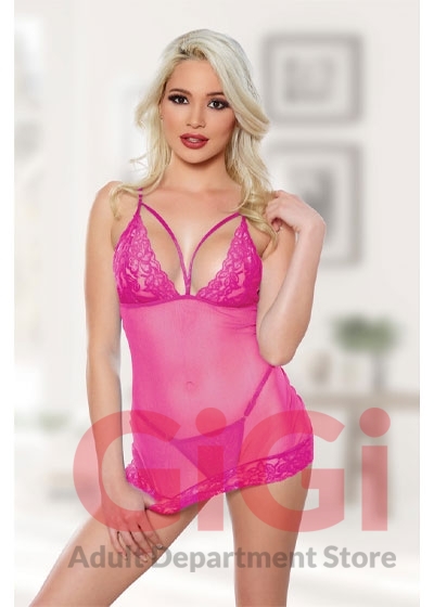 Allure Lace And Fishnet Chemise Babydoll With G-String Hot Pink