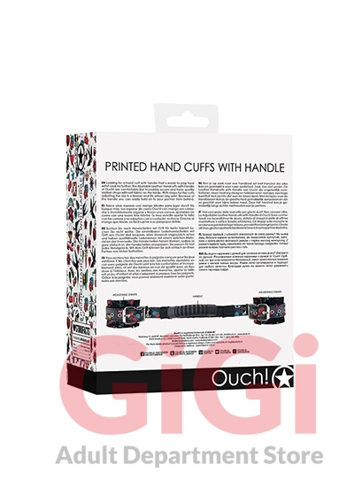 Ouch! Printed Handcuffs With Handle Old School Tattoo Style Black