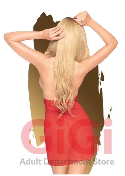 Classic semi transparent chemise. It features a V-shaped neckline with a floral pattern and a sensual bow in the middle of the breasts. With an open back and a plain black bottom it is ideal to give a more elegant touch to your night look.