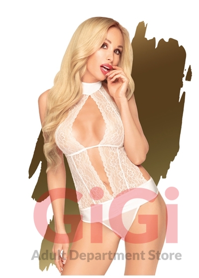 Enjoy in style with this semi sheer lace Teddy with floral lace. With a V-shaped neckline down to the hip it is perfect for a crazy night full of passion. The body is attached with a strip of silk on the back, leaving it completely open.