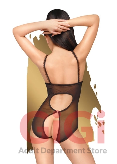 Turn on your spicier side with this teddy with open cups. It features a semi-sheer flower pattern and an open back and crotch.