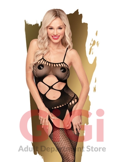 Turn on your spicier side with this bodystocking. It has several patterns in one, holes, thin strips, wider ... ideal to show off your curves to the fullest.
