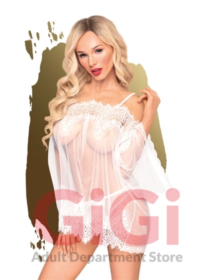 Are you looking for seduction in boho chic? In this dreamy, airy chemise you can bring the sex on the beach from holidays right into your bedroom! The transparent design made of white mesh allows your lover some see through, you’ll look frivolous and the chemise flatters your curves. A fine wavy hem and delicate eyelash lace provide a playful touch - the carmen neckline and the wide-cut trumpet sleeves complete the look. The set includes a cute Brazilian panty to match the top.