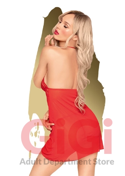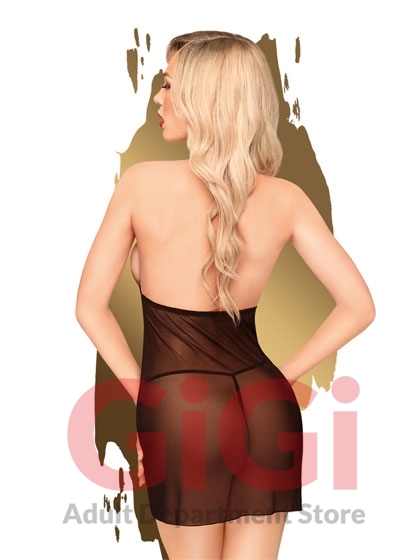 Tell your lover a slightly different night story - preferably in this seductive mini dress! The dress is made of fine mesh that wraps itself comfortably around your curves and gives you a feminine silhouette. Since the V-neckline is made of fine lace, your cleavage is particularly emphasized and the halterneck straps ensure an optimal fit. Your back can also count on delightful looks thanks to the deep cutout. The set also includes a string that matches the dress - for a perfect bedtime story.