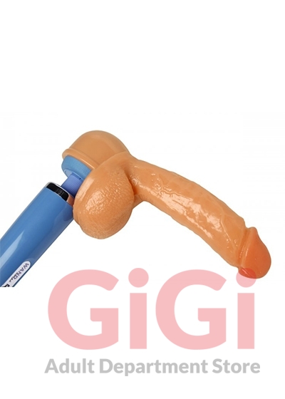 Turn your vibrating wand into an insertable pleasure tool. This dildo wand accessory has a full 6.5 inches of shaft to satisfy, and a pair of lifelike balls to bottom out against. Just slip the cup over the top of your favorite massage wand, and let the lusty length satisfy you as the shaft carries the powerful vibrations from your wand right into your pleasure center. Made of slick, rigid PVC for easy maneuverability and insertion, this exciting toy stays nice and hard for exciting penetration whenever you want it.