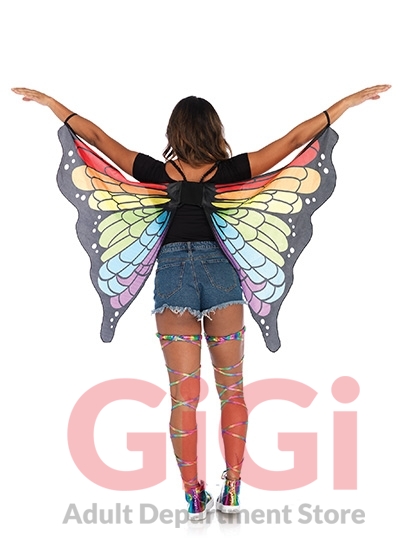 From Pride to summer music festival season, add a vibrant vibe to any look with the Leg Avenue Rainbow Butterfly Wings. The cute and colorful festival wings feature a vibrant rainbow butterfly wing pattern, flowering wing design and stretchy wrist loops. For comfort and ease of wear, these wings are complete with stretchy elastic back straps and wrist straps.