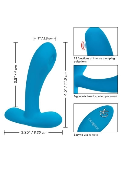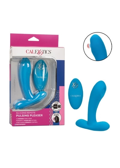 The Silicone Remote Pulsing Pleaser is the intimately curved teaser of your dreams. The sleek probe has a powerful pulsating tip, sensually curved design, and 12 functions of thumping made to thrill with every teasing touch.