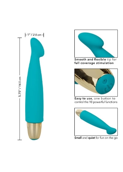 Effortlessly control pure pleasure with an easy-touch silicone button and hold for 3 seconds to turn on or off. Use the smooth single button control to enjoy up to 1.5 hours of vibrating pleasure. Charge up your passion in only 1.5 hours by plugging the provided USB cable into the self-sealing charging port on the back of the massager.