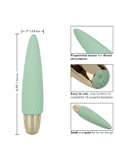 The ultra-plush silicone and uniquely textured body are great for exploring sensual sweet spots and intimate pleasure points with ease. With a rounded tip and supple surface, you'll be able to indulge in thrilling vibrations from any angle your desire. Use the smooth single button control to enjoy up to 70 minutes of vibrating pleasure. Charge up your passion in only 1.5 hours by plugging the provided USB cable into the self-sealing charging port on the back of the massager. The slim massager discreet 4-inch size makes it the perfect travel companion, letting you embrace radiating pleasure wherever your fantasies take you.