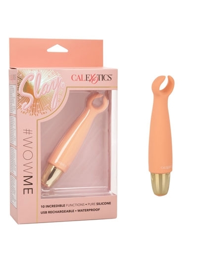 Slip the tickling Slay #WowMe into your luggage for knee-shaking pleasure wherever you go. The tickling teaser fits between your fingers to let you deliver pinpoint tantalization and thrill with flickering vibrations. Get playful while you flicker through 10 indulgent vibration, pulsation and escalation functions with the easy-touch control button. The unique flexible open design is great for exploring sensual sweet spots and delivering pinpoint stimulation with ease.