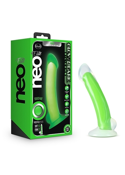 Neo Elite Glow in the Dark Omnia Silicone Dual Density Dildo will bring new light to your bedroom! Neo Elite Glow in the Dark dildos feature SENSA FEEL® dual density technology: a see-through layer over a firm core that shines in the darkness. The two-layer construction creates an ultra-realistic feel—soft yet firm. Neo Elite Omnia has a smooth, curved shaft to lightly massage G-spot or prostate. Stick its strong suction cup base onto any flat surface, or fit it into your favorite harness. Made of 100% platinum cured silicone, Neo Elite Glow in the Dark dildos are body safe, phthalate-free, and easy to clean.