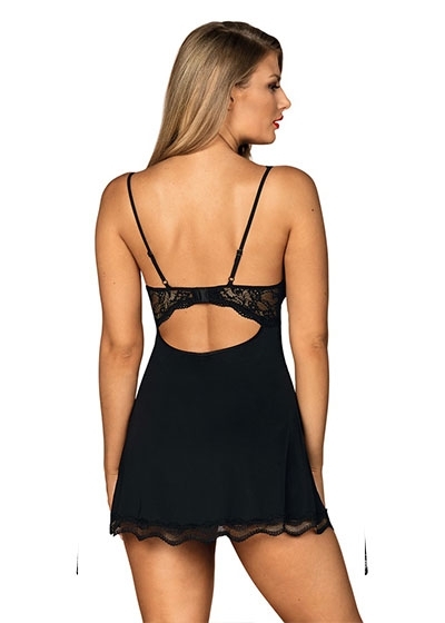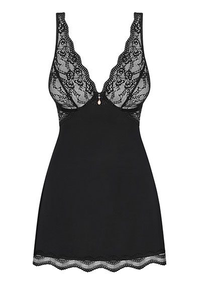 This chemise stands out with its lace cups and hem. It is fitted at the waist and emphasises feminine curves in a sexy way. A matching string completes this hot bedroom look.
